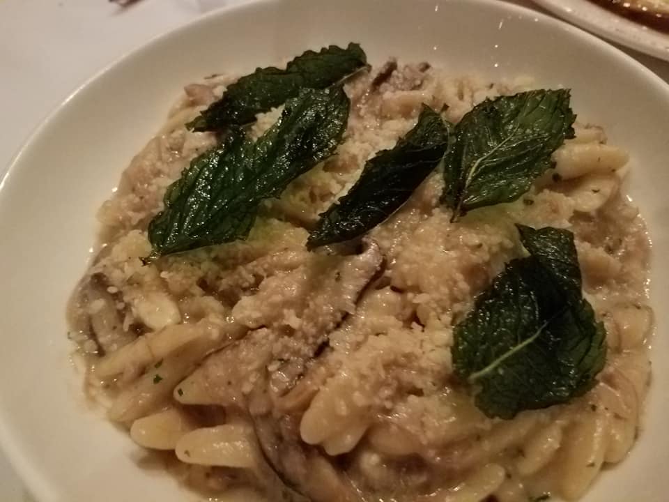 Our second savory course was a Duck Confit Cavatelli with Shiitake Mushrooms and Mint. Many might think that this would be my favorite dish. It had many things going for it, the duck confit, which was plentiful, the mushrooms, which added texture and a nice earthy flavor, and the mint. It was very good, but I liked the Pork Rillettes better.